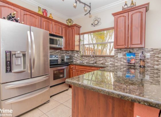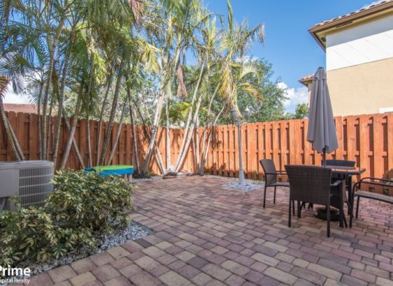 Impeccable 3 bed, 2.5 bath townhouse in the sought-after community of Santorini at Vizcaya. This beautiful home features a remodeled kitchen, granite tops, SS appliances, washer, dryer, ceramic & wood laminate floors, remodeled bathrooms, slate wall accents, 1-car garage with an office conversion, ample storage, and a fantastic backyard with brick pavers & plenty of room for entertaining. Vizcaya is a gated community with 24 hour live security, multiple clubhouses & community pools, and is located minutes from fine dining, beautiful parks, and night time entertainment. Safety, serenity, and comfort at a terrific price & value.